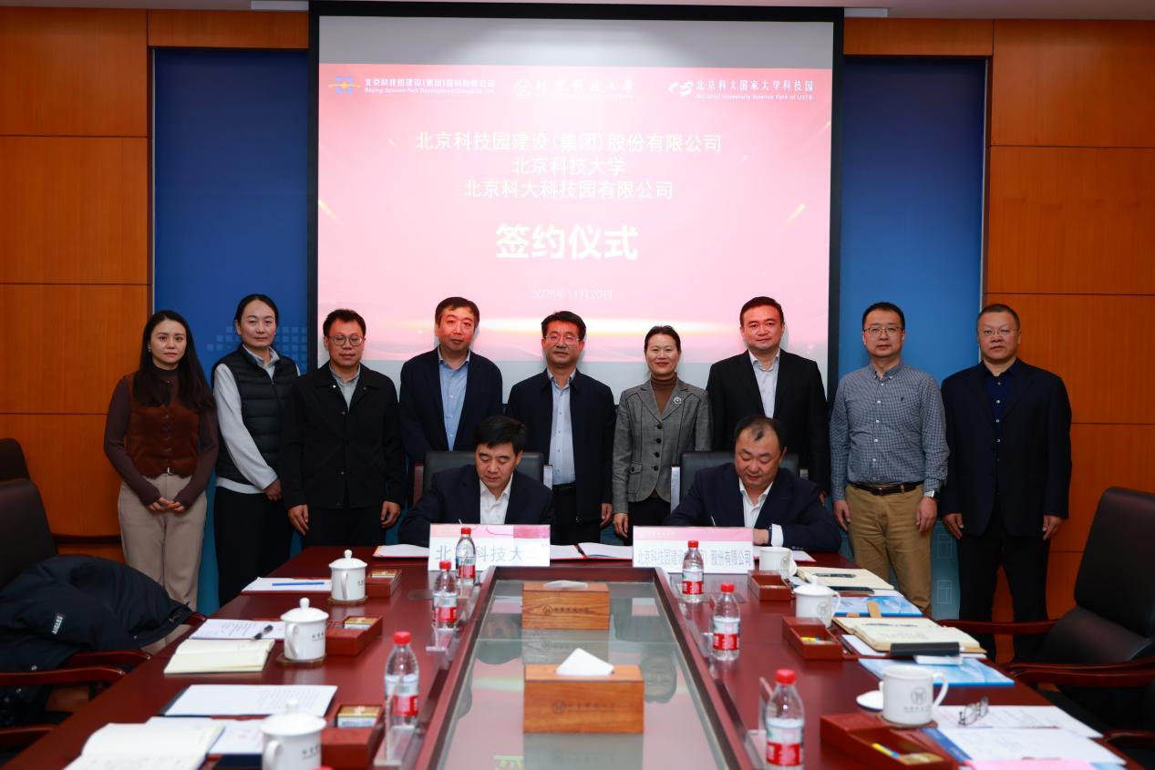 11月20日,学校与北京科技园建设(集团)股份有限公司、北京科大科技园有限公司签署战略合作协议。北科建集团党委副书记、总经理杨奇勇,副总经理白晓燕带队来校,学校副校长张卫冬出席签约仪式。签约仪式由北京科大科技园有限公司董事长王斌主持。